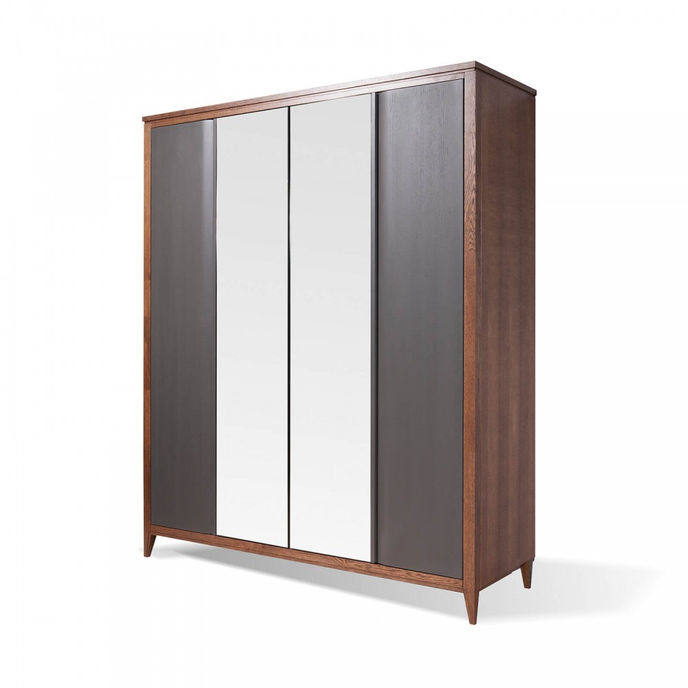 Фасад: клееный массив древесины (дуб), крашеный эмалью, зеркало.Каркас: МДФ, облицованный шпоном дуба.Опоры: массив дуба.Фурнитура: петли «Hettich» (Германия), направляющие Westline (Китай).Цвет:Табак/Антрацит.
