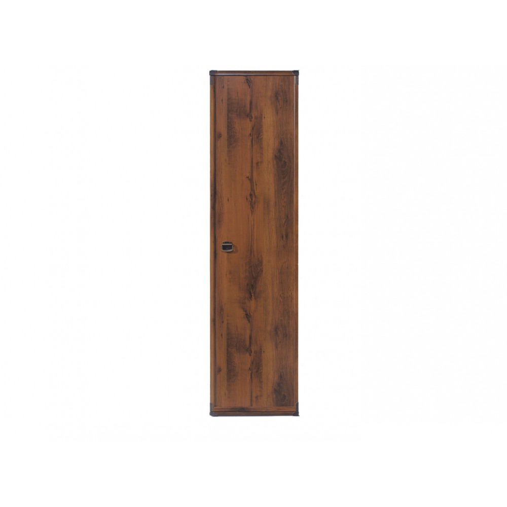 1 распашная глухая дверь, за которой расположено 4 полки из ДСП.Дверь может устанавливаться как с правой стороны, так и с левой.Оригинальная металлическая ручка.Металлические накладки на уголках.С помощью данного шкафа Вы сможете оформить гостиную, комнату ребенка.Цвет корпуса: Дуб саттер.Цвет корпуса: Сосна каньйон.