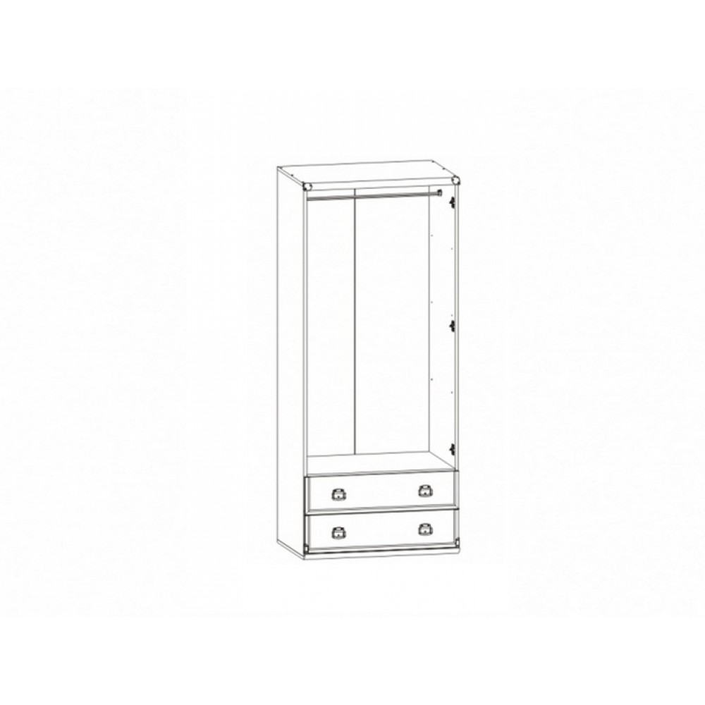 Шкаф разделен на 2 отделения: верхнее –отделение с распашными дверями, за которыми расположена стационарная штанга для одежды, нижнее – 2 выдвижных ящика на металлических роликовых направляющих.Оригинальные металлические ручки.Металлические накладки на уголках.Необходимый элемент при оформлении молодежной комнаты.Отличным дополнением при оформлении молодежной комнаты станет кровать JLOZ 90х200, диван-кровать JLOZ 80/160.Цвет: Сосна каньйон.