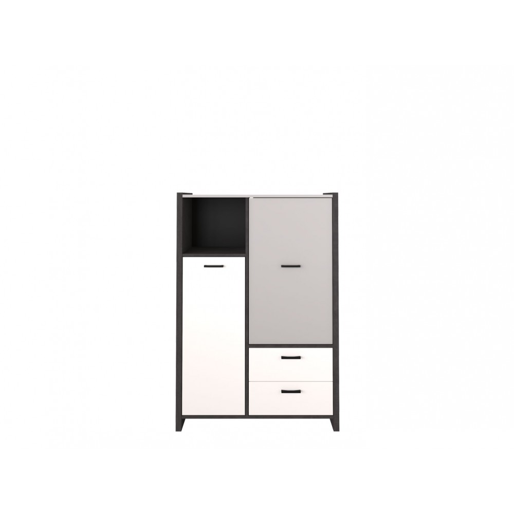 2 закрытых отделения с полками за распашными дверями.Открытая ячейка для хранения.2 выдвижных ящика на металлических направляющих скрытого монтажа.Ручки пластиковые с покрытием soft-touch.Контрастное цветовое решение фасадов.Идеально подойдет для обустройства детской в современном стиле.Цвет корпуса: Матера/ Старый стиль.Цвет фасада: Матера/ Старый стиль.Цвет корпуса: Матера/ Серый.Цвет фасада: Белый/ Серый.