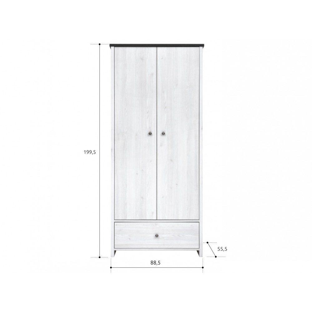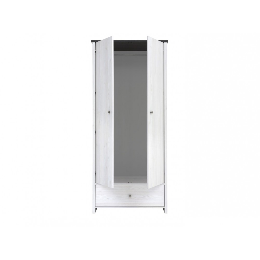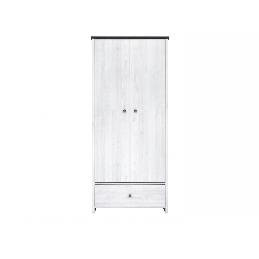 Платяной вместительный шкаф разделен на 2 отделения: отделение со стационарной металлической штангой для одежды и выдвижной ящик.Необходимый элемент при оформлении спальни, молодежной комнаты.Цвет корпуса: Джанни/ Сосна ларико.Цвет фасада: Джанни.